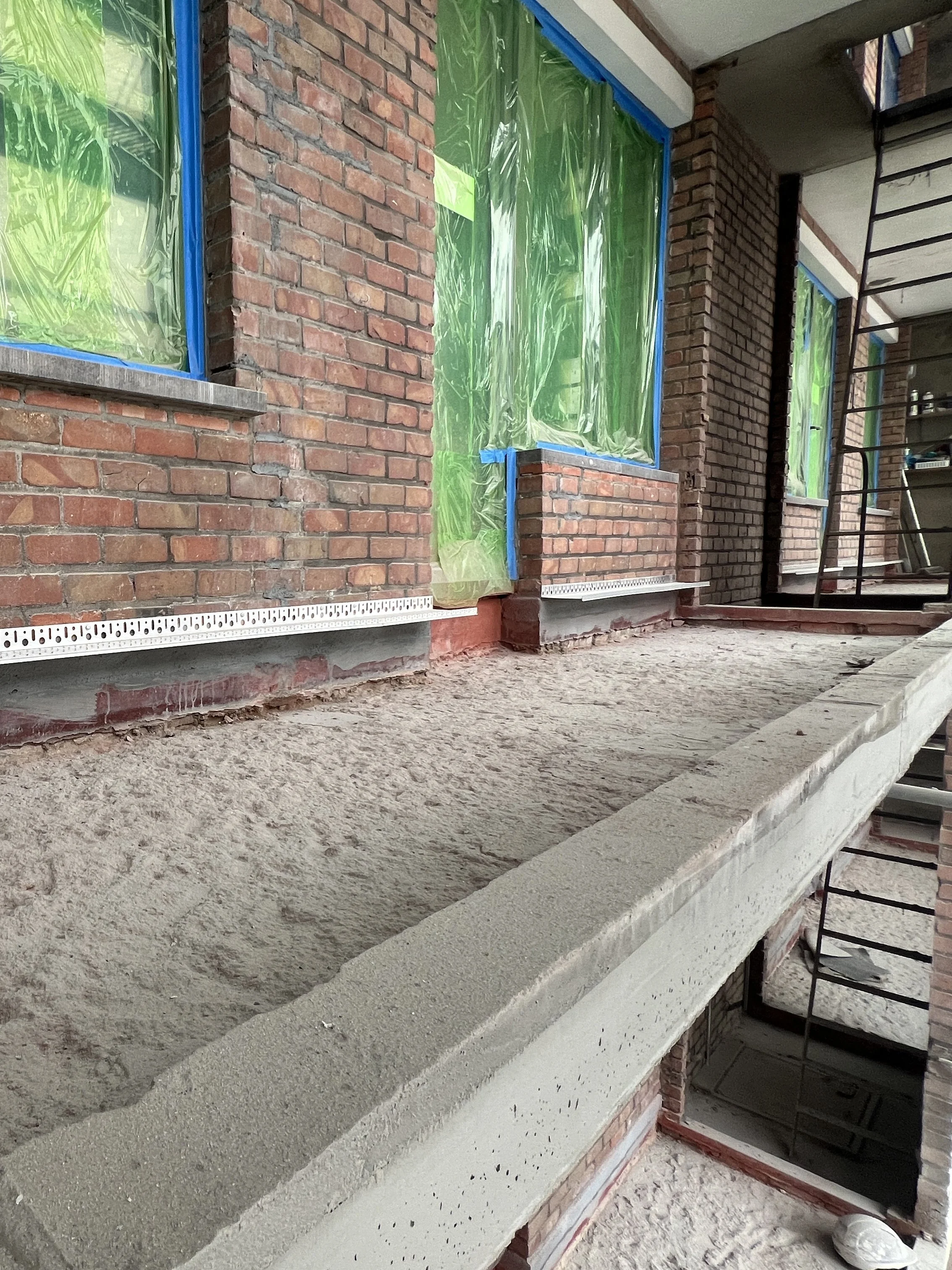 Zoals steeds vertrokken we terug van de draagstructuur. De bestaande chape en tegelafwerking werden volledig verwijderd tot op het beton. Na een grondige inspectie voerden we de nodige betonherstellingen uit. Ook de terrasfronten werden structureel aangepakt: deze werden voorzien van bijkomende wapening, bekisting en opnieuw opgegoten om een duurzame basis te garanderen.