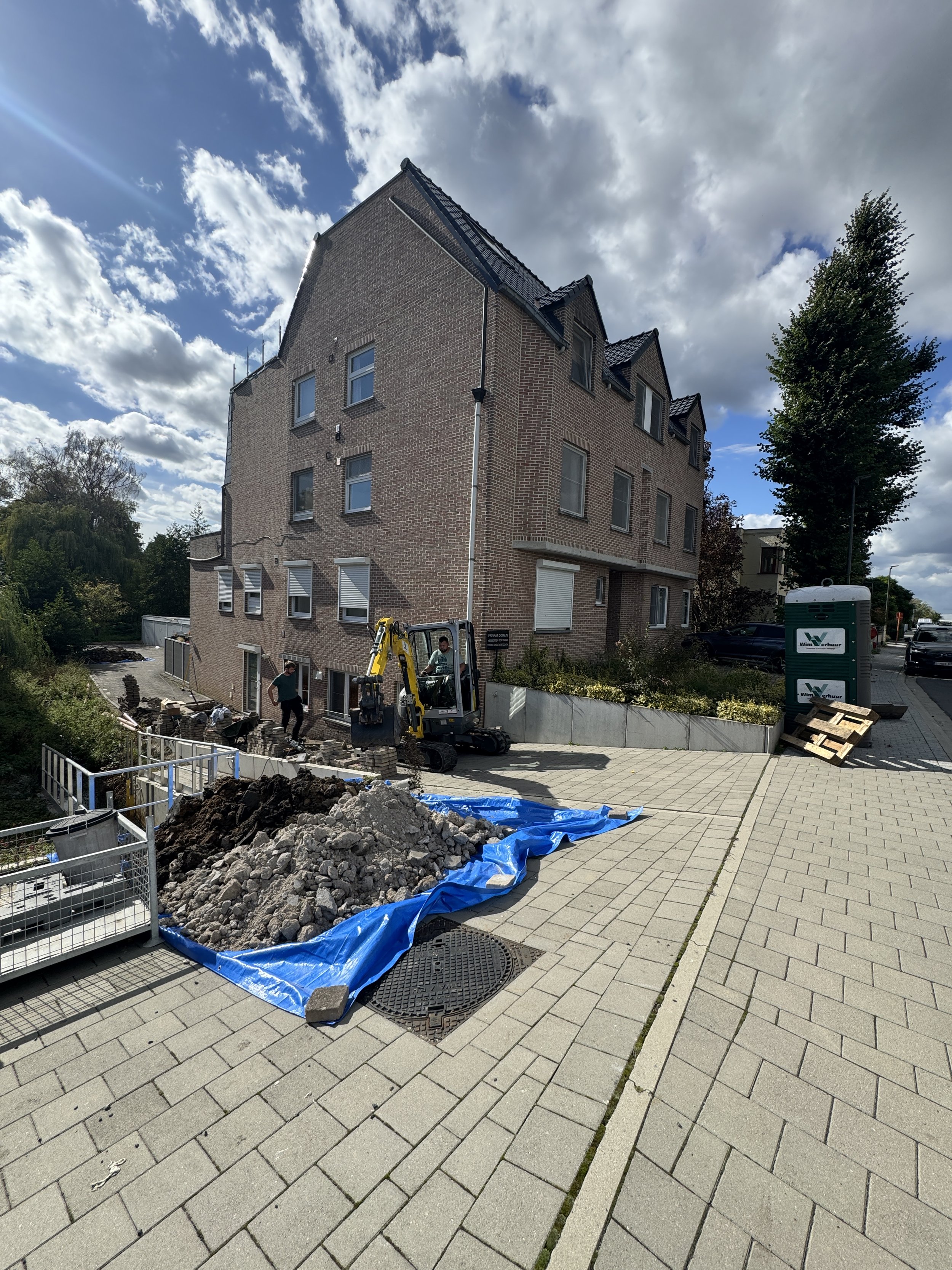 Heraanleg van opritten, terrassen en tuinen na rioleringswerken, met aandacht voor functionaliteit en afwerking.